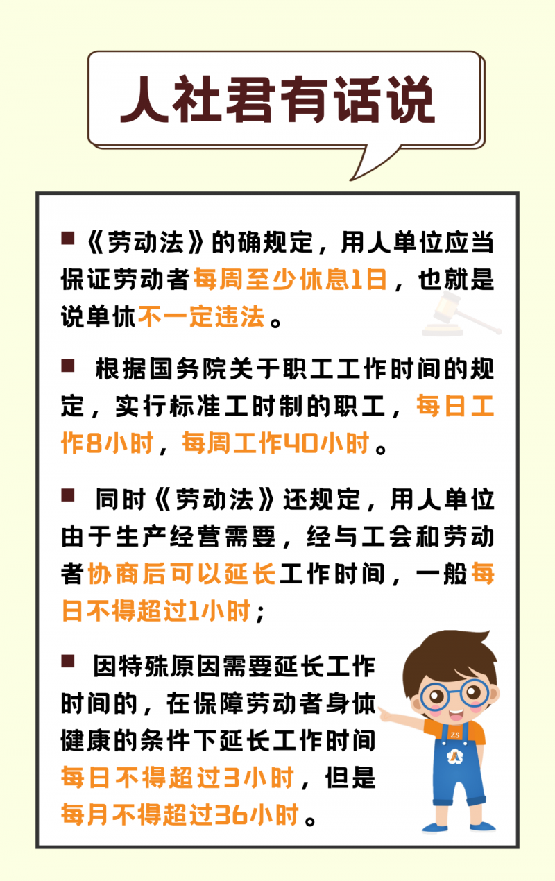 根据以上3个法条,有以下3种情况,单休是完全合法的。